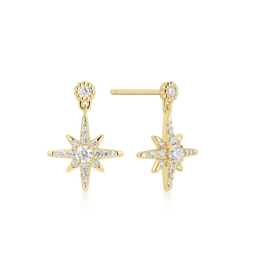 For the festive spirit who celebrates with refined elegance. These earrings showcase sparkling eight-point stars, designed to dance with light at every turn. Effortlessly layered with other earrings to enrich your ear party or worn alone for a statement look, they add a touch of celestial brilliance to any holiday outfit and make a cherished gift for your family or friends.
