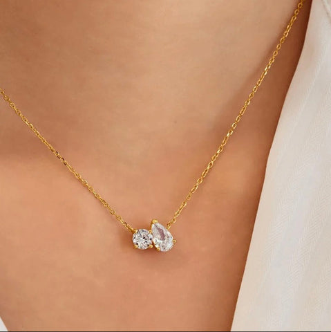 "Toi & Moi" – French for "You and I" – an eternal dialogue between two souls. This signature two-stone necklace celebrates life's most cherished bonds, for lovers entwined by destiny or kindred spirits united in heart. A profound keepsake to honor a connection that transcends time, or to mark the dialogue within your own evolving story.