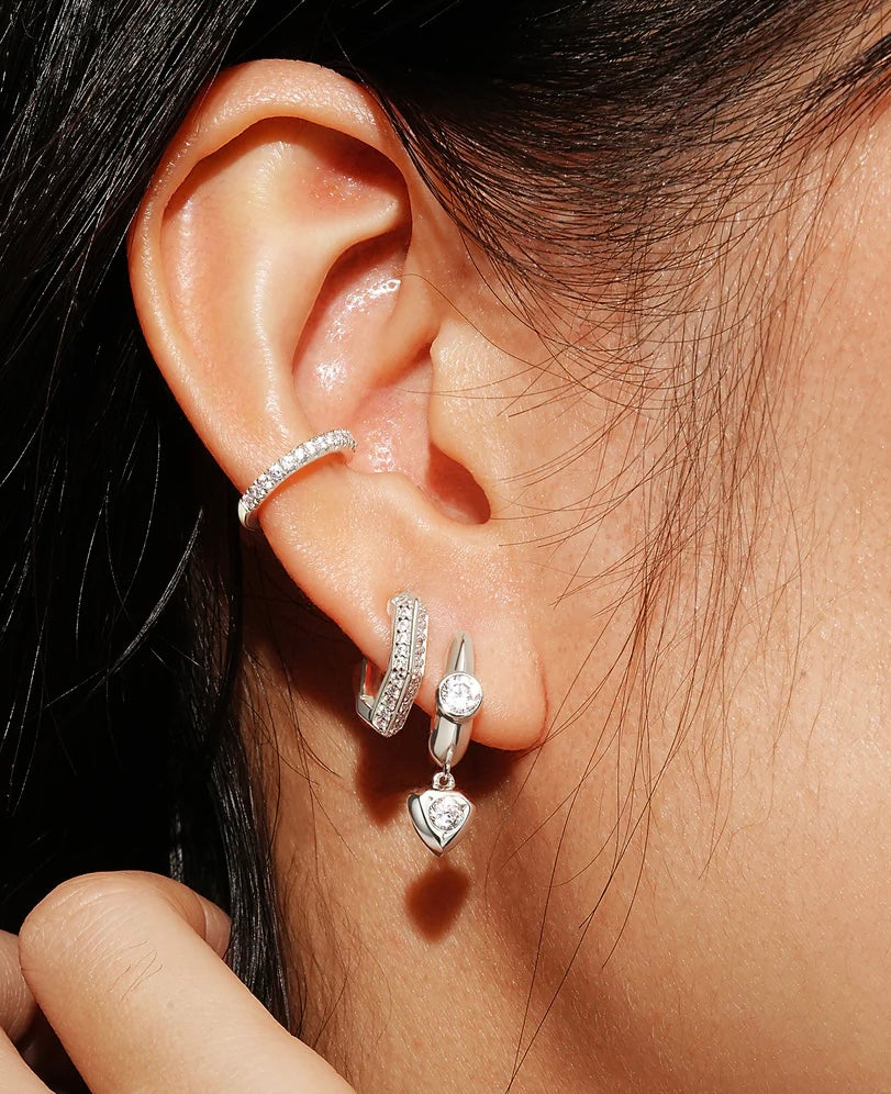 Ready to take on the world this season? Embrace your inner strength and confidence with these sparkling shield huggies. Designed for the fearless woman who commands attention. Mix and match with other studs, huggies and hoops to making a statement.